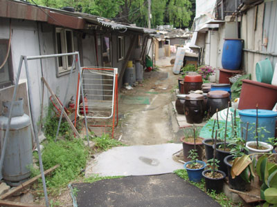 ▲ 포이동 골목길. 살림에 필요한 빨래걸이며 항아리들이 사람이 살고 있다고 말해준다.