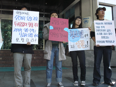 ▲ 2006년 청명고에 의한 학생 인권침해에 항거하여 청소년인권활동가들이 국가인권위원회에 진정하는 모습