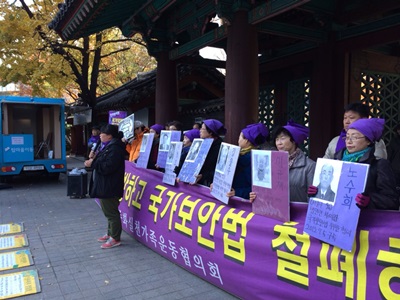 그뿐만이 아닙니다. 1998년부터 시작된 국가인권위 설립 투쟁을 비롯한 각종 인권현안을 목요집회에서 다루었습니다. 목요집회에 가면 한국의 인권현안이 무엇인지를 알 수 있었습니다. 목요집회만이 아니라 국보법 폐지 국회 앞 농성, FTA 반대 집회와 2008년 촛불집회까지, 어머니들은 노구를 이끌고 거리에 함께 서셨습니다.