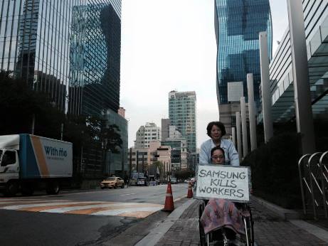 그래서 서울 시내 한복판, 강남역 인근 삼성전자 서초 사옥 바로 앞에서 삼성반도체 직업병 문제 사회적 해결을 위한 24시간 이어말하기가 10월 7일부터 계속되고 있다. 지금도 영화를 보다가 황유미 씨(극 중 윤미)가 죽는 장면에서는 슬그머니 자리를 뜨는 늙은 아버지가 찬이슬을 맞으며 노숙 농성 중이다. 삼성이 언론플레이를 하면서 말하는 대로 돈을 더 받기 위해서가 아니다. 피해자로서 권리를 지키기 위해서다. 자신들의 피해로부터 이전과는 다른 세상을 만들기 위해서다.