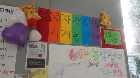 ▲ 버들 님이 보내준 사진. 2014년 12월 6일부터 11일까지 6일간 서울시청 점거 무지개농성이 이어졌다. 당시 박원순 서울시장은 ‘성소수자 차별 금지’를 명시한 <서울시민 인권헌장>이 이미 통과되었음에도, 반동성애 세력에 굴복하며 선포를 거부했다. “성소수자에게 인권은 목숨이다” 외치며 돌입한 무지개농성은 평등과 연대의 거점이었다.