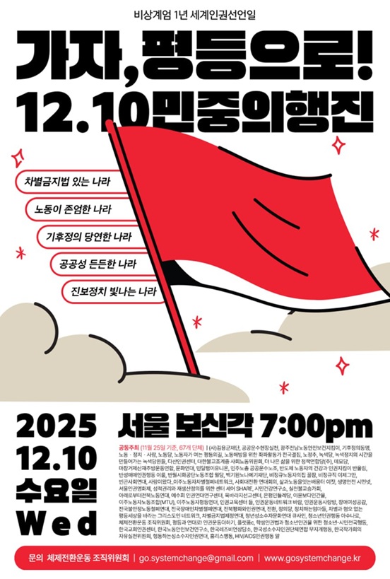 '가자, 평등으로!' 12.10 민중의 행진으로 모여 함께 외칩시다!