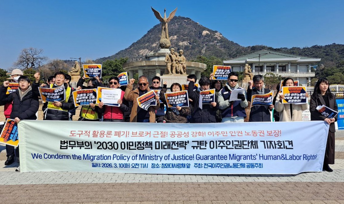 3월 3일, 법무부는 ‘2030 이민정책 미래전략'을 발표했습니다. 이주민을 노동력과 인력 보충수단으로만 바라보며 그에 맞게 통제하고 관리하고자 하는 도구적 시각에 기반한 정책을 규탄하며 기자회견에 함께 하였습니다. 이주민을 동등한 사회 구성원으로 바라보며 차별을 철폐하고 인권을 보장하라!