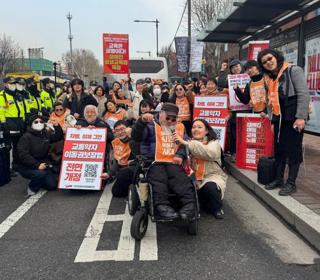 지방선거를 앞두고 전국장애인차별철폐연대에서 진행 중인 출근길 지하철 선전전에 함께했습니다. 사랑방에서는 기후위기 속 이동권과 공공교통 확대의 필요성을 강조하고, 시설 중심의 차별 구조를 비판하며 탈시설과 이동권 보장을 위한 투쟁에 함께 하겠다고 발언했습니다. 선전전 이후에는 지상에서 차별 버스를 멈추는 직접행동을 진행하며 ‘교통약자 이동권보장법 전면 개정’을 요구했고, 장애인도 시민으로 이동하는 민주주의를 향한 투쟁을 이어갔습니다.