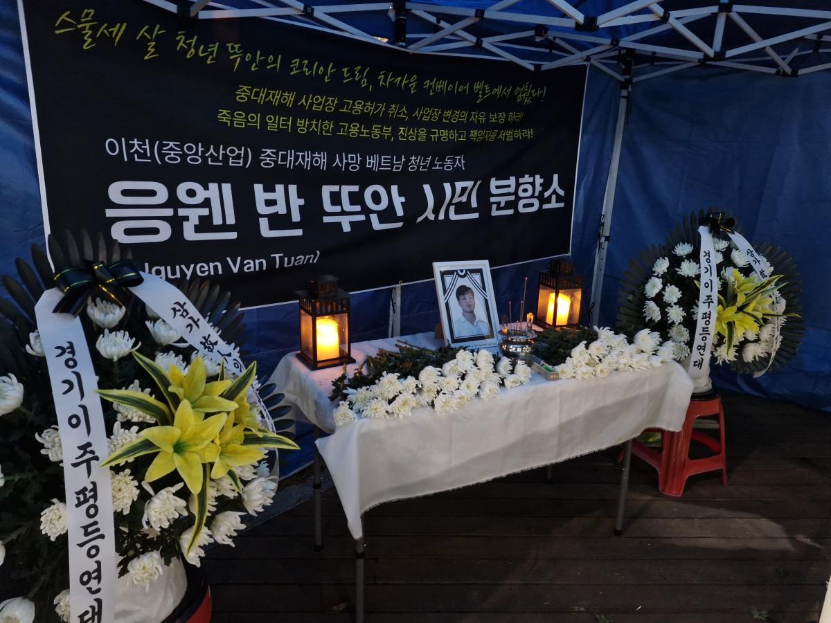 이천에서 중대재해 사고로 돌아가신 베트남 청년노동자 뚜안 님을 기리는 마음으로 추모 문화제에 참석했습니다. 흐린 날씨에도 경기고용노동청 앞에 많은 시민들이 모여 뚜안 님을 위해 기도하고, 재발 방지를 위한 구호를 외치며 누구도 일터에서 죽지 않는 세상을 위한 마음을 모으는 자리였습니다. 삼가 고인의 명복을 빕니다.