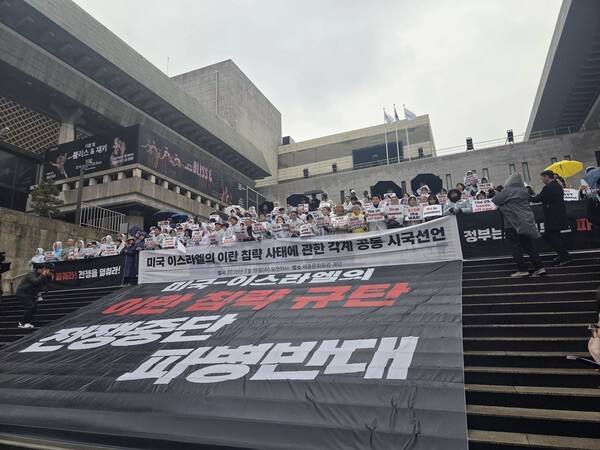 660개의 시민사회 단체가 모여 ‘미국과 이스라엘의 이란 침략 사태에 대한 각계 공동시국선언문’을 발표하고 정부를 향해 트럼프 대통령의 호르무즈 해협 파견 요청 거부를 촉구했습니다.